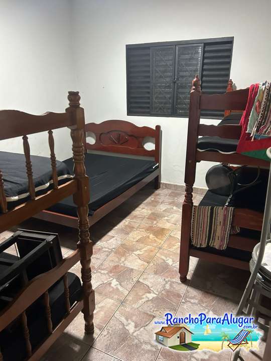 Quarto 1= com 01 cama de casal, 02 beliches, 6 pessoas.