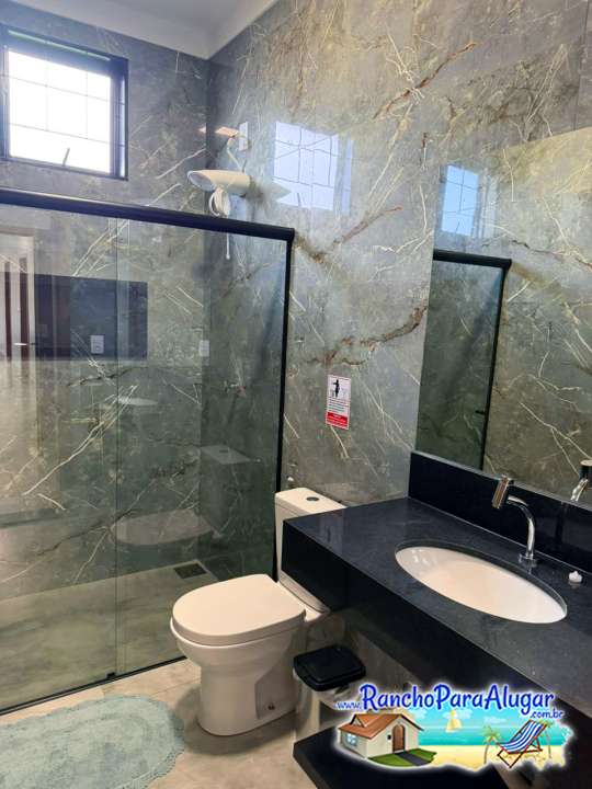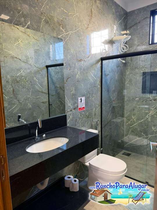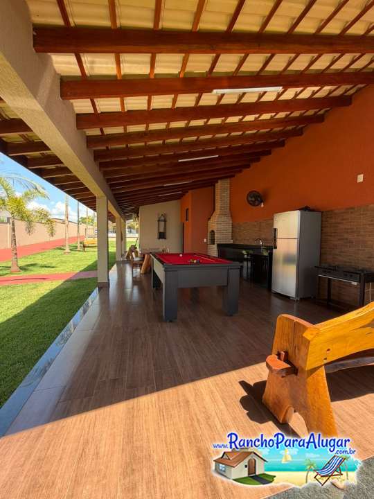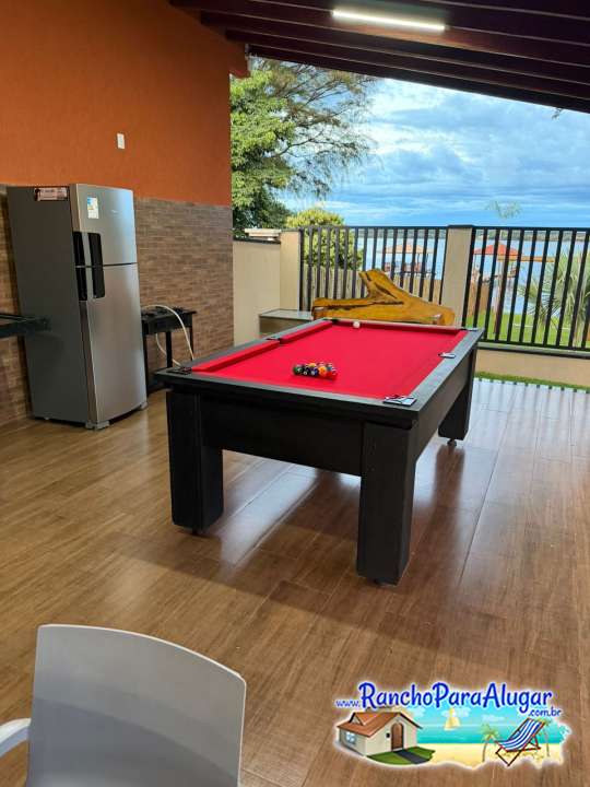 Quiosque completo com banheiro, área gourmet e mesa de bilhar.