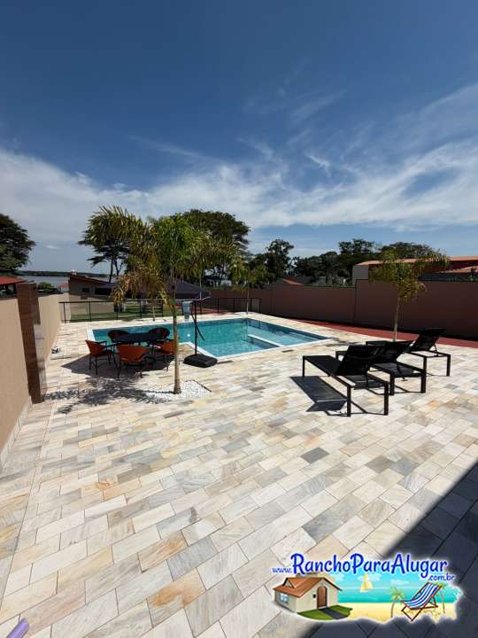 Rancho com ótima localização, Piscina adulto, Píer com Quiosque e ampla varanda com área para churrasco, com 06 suítes e um grande estacionamento dentro do rancho, às margens da represa do Rio Grande em Miguelópolis Sp.