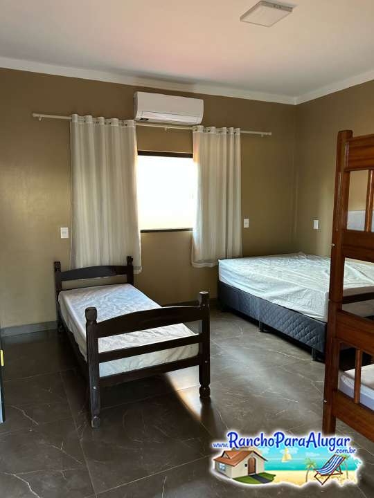 3 Suites completas com ar condicionado, camas de casal, solteiro, beliches e colchões avulsos que comportam até 15 pessoas;