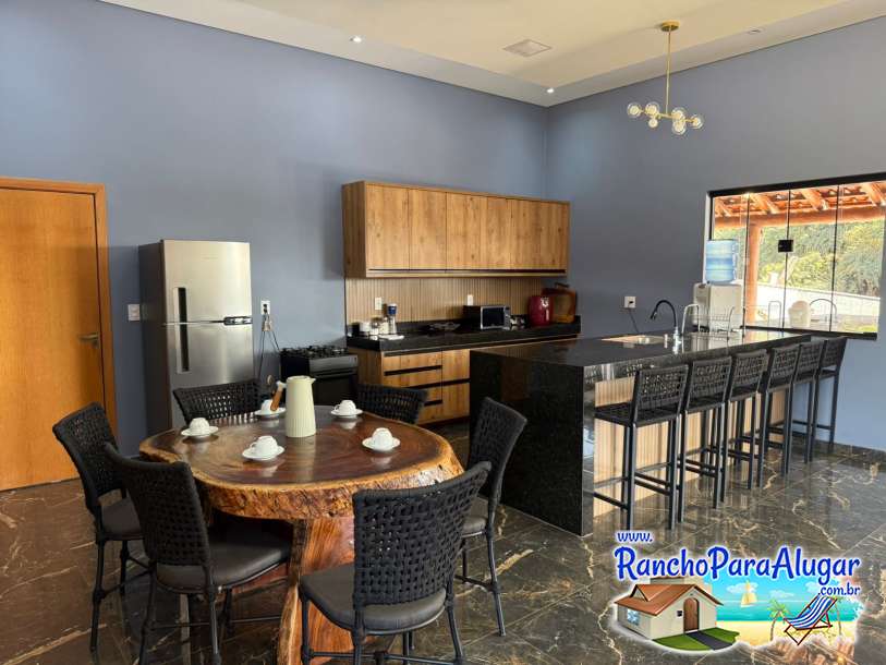 Rancho aconchegante, varanda com área para churrasco, 4 suites, piscina, píer com quiosque, local agradável e aconchegante para você curtir seu fim de semana, férias e feriados, ainda dispomos de estrutura para assar costelas e porco no rolete, além de um fogão a lenha.