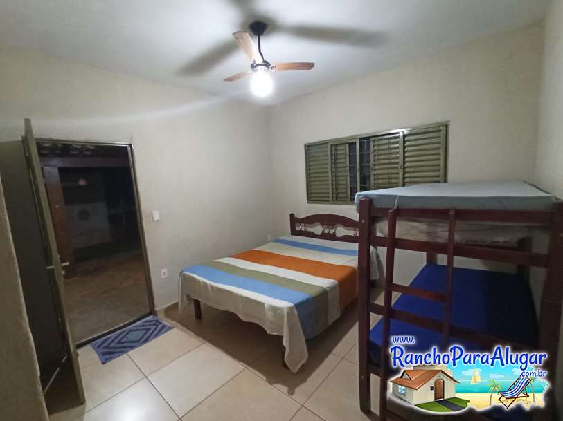 Rancho aconchegante, varanda com área para churrasco, local agradável para você curtir seu fim de semana, férias e feriado. 3 Dormitórios cada um com uma cama de casal e uma beliche acomoda 12 pessoas Ventilador de teto W -Freezer geladeira Píer Rampa para descida de embarcação Acomoda 12 pessoas